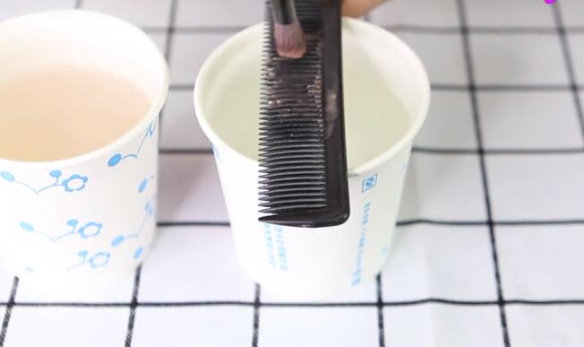 (一杯清水、一杯放入洗發露,把刷子在水中清洗一次再用梳子來回摩擦)
